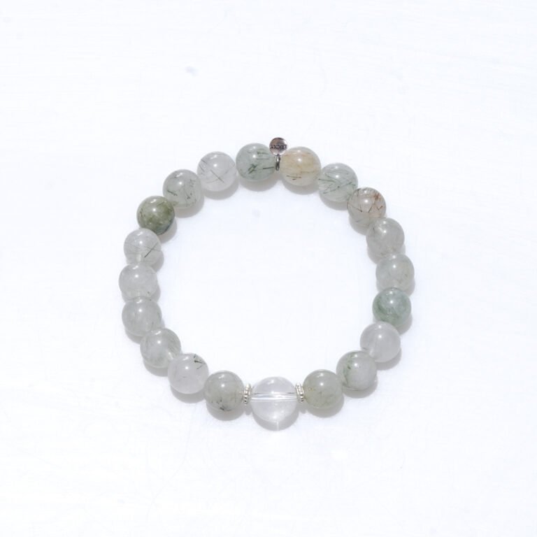 Natural greenquartzrutilated & White Quartz beaded bracelet