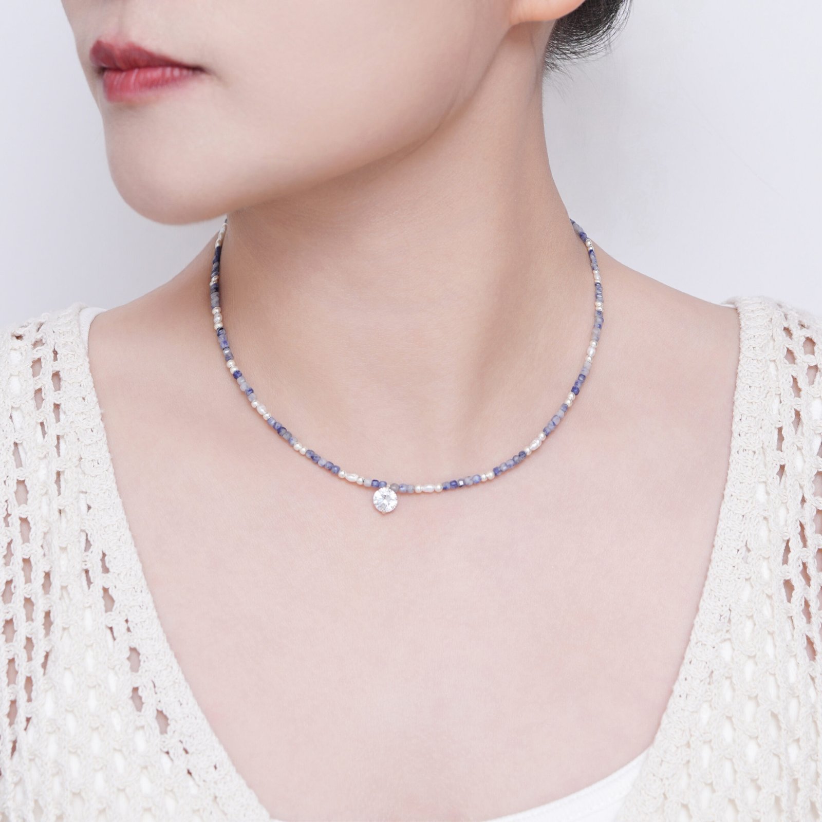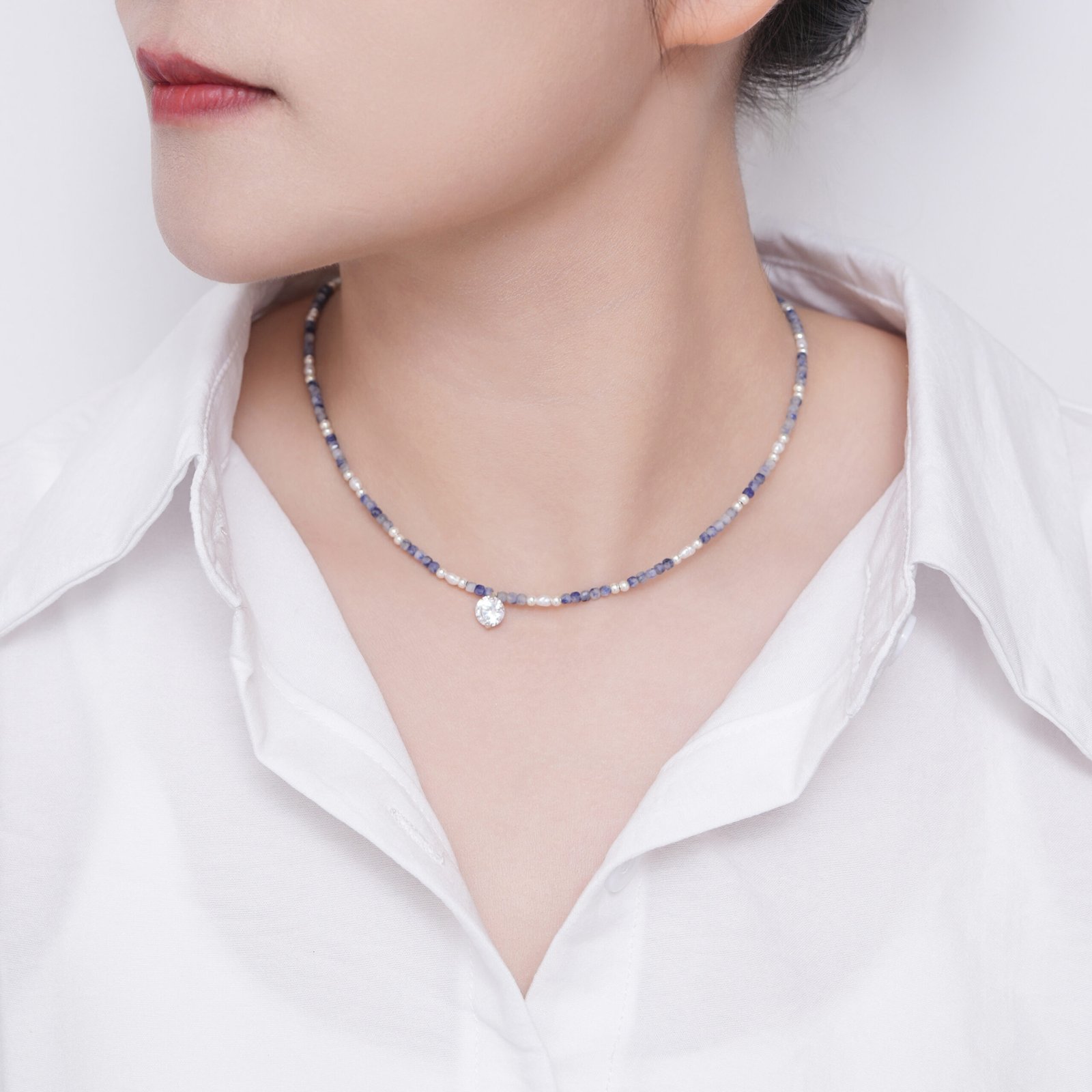 Bluestone Natural Stone Beaded Necklace Natural Freshwater Pearl Collarbone Necklace