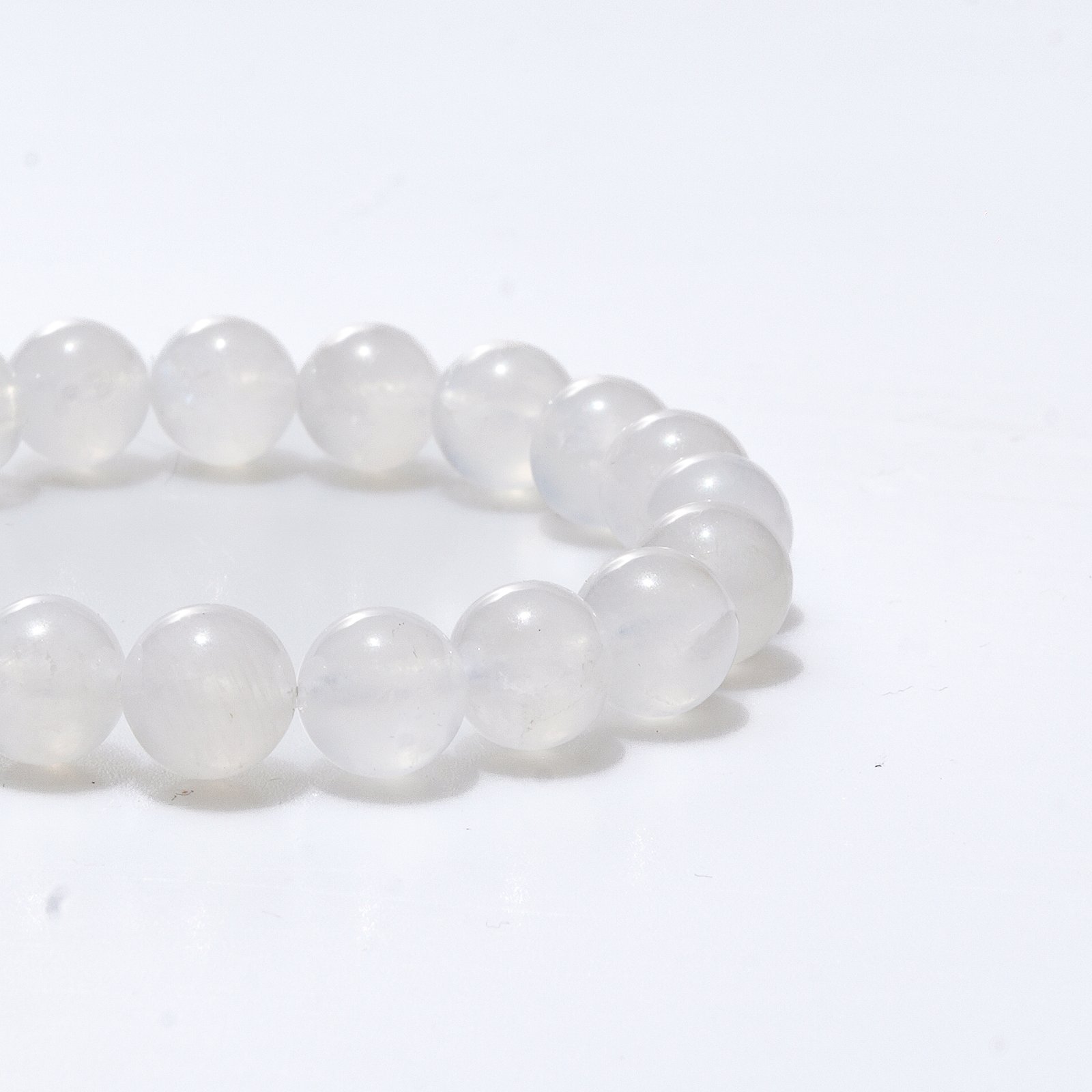 - Blue Moonstone: the guardian stone of symbiotic love, the spiritual key to the hidden meanings. Symbiosis (Love Symbol): As the “Lovers’ Stone”, it symbolizes faithful love and emotional fulfillment, attracts true love, promotes understanding and tolerance between partners, resolves conflicts, and is often used as a token of love for the beloved. Subconscious Exploration (Spiritual Awakening): Connects to the Moon energy (symbolizing feminine energy and the subconscious mind), activates the brow chakra (intuitive power) and the top chakra (spiritual connection), enhances clairvoyance and dream healing, and guides the repair of inner trauma and the return of the true self. Flexibility Guard (Adversity Transformation): Formed in high-temperature and high-pressure geological environments, it is a metaphor for “quenching new life in the darkness of the night”, neutralizing excessive yang energies (such as violent impulses), and endowing the wearer with a calm mind and elegant demeanor.
