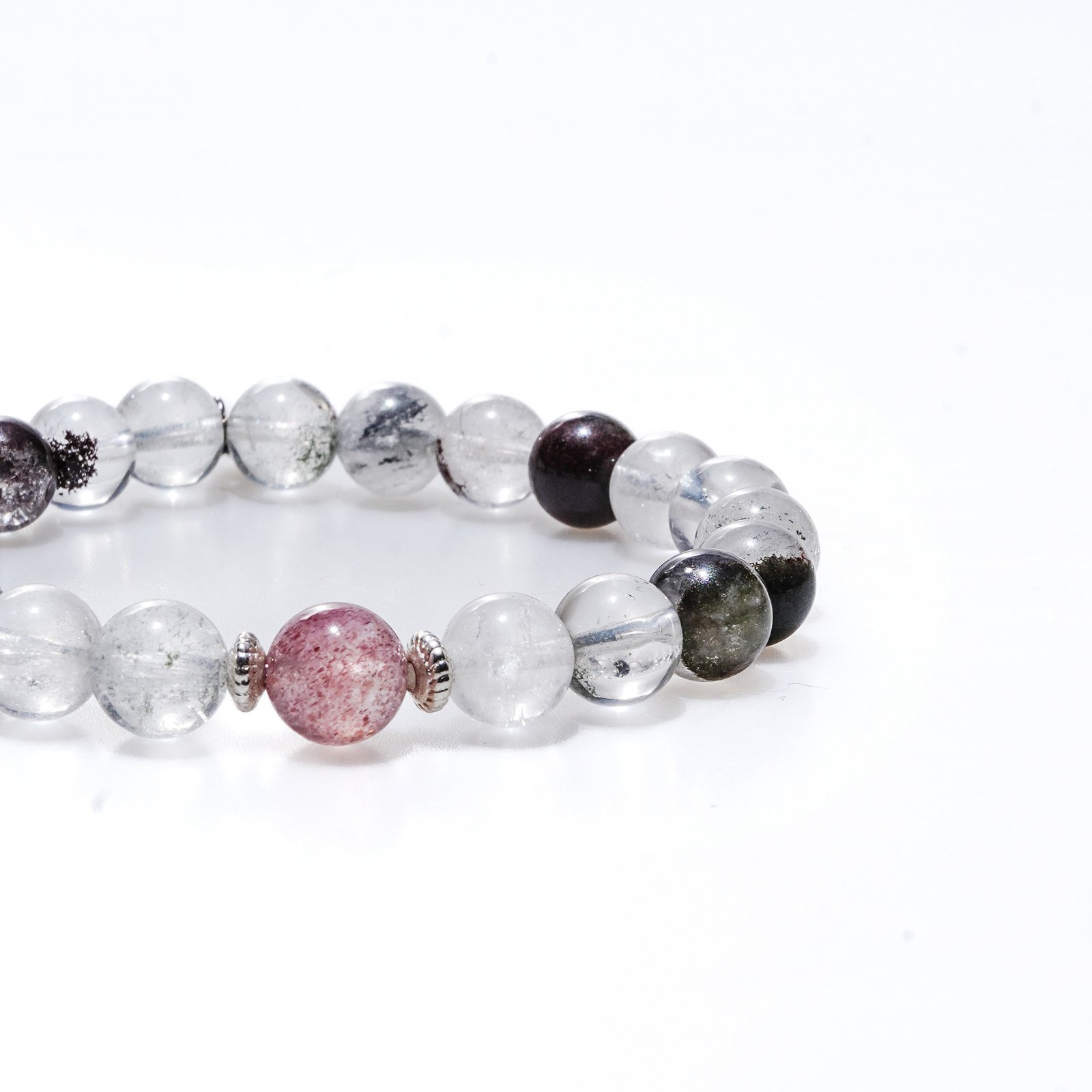 Natural Green Phantom Quartz & strawbeny quartz Crystal Beaded Bracelet